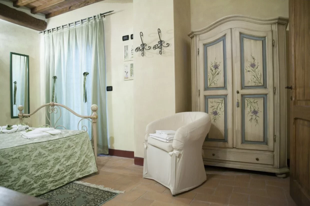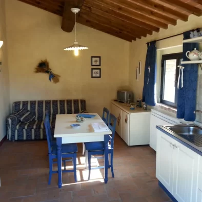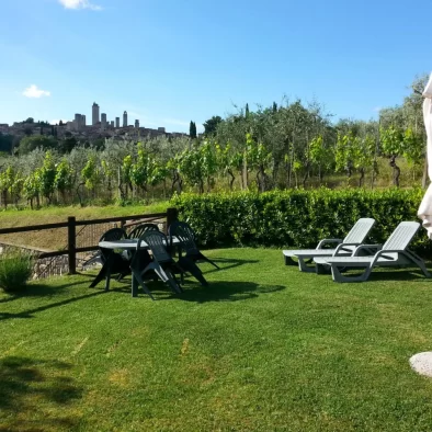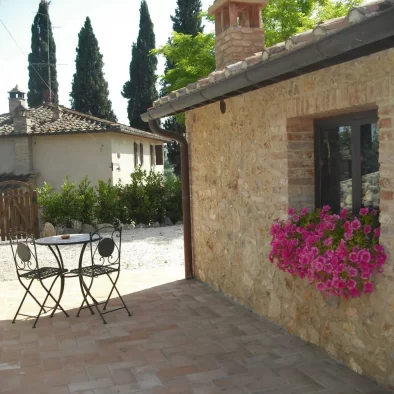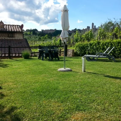 L’ortensia è un grazioso appartamento di 45 mq ricavato in una metà del vecchio fienile nel Podere degli Olivi, dove un tempo venivano sistemati gli attrezzi e le macchine agricole. Recentemente ristrutturato, il fienile è circondato da terrazze in cotto ed aree giardino arredate con tavoli, sedie, ombrelloni e sdraio, dalle quali si gode di una splendida "San Gimignano" la famosa Città medievale. A disposizione degli ospiti un barbecue per le cene all’aperto in allegria. L’appartamento è composto da un confortevole soggiorno con cucina in stile country e mobili antichi restaurati, un’area salotto con divano (che su richiesta può diventare letto matrimoniale),da una camera da letto, da un bagno con cabina doccia. Sia dalla camera che dal soggiorno si può accedere alla terrazza in cotto e da qui con una caratteristica scala in pietra, al giardino.